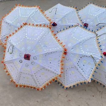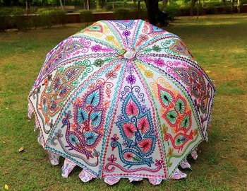 Rjasthani רקום מטרייה כותנה רקומה לחתונה & אירוע תפאורה צבעונית הגנה על השמש החורבת הולי מתנה
