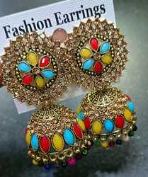 Hint üretimi mücevherat hint takı geleneksel altın ton taklit küpe kadın bayan kız için indirimli fiyata